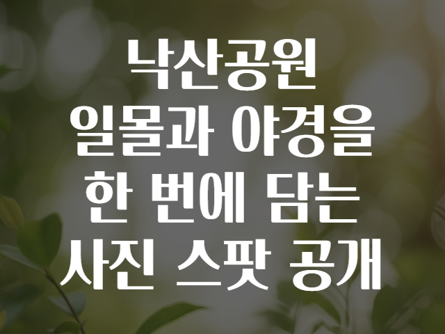 여러분은 서울 도심에서 멋진 일몰과 환상적인 야경을 한 번에 담을 수 있는 명소를 알고 계신가요?📸🌇 서울 북촌과 중구 일대를 아우르는 낙산공원은 ‘숨은 보석’ 같은 장소로, 수많은 사진작가와 커플, 여행객들이 찾는 핫플레이스입니다. 낙산공원 일몰은 저녁 노을이 붉게 물드는 순간부터, 해가 지고 나면 반짝이는 서울의 야경까지 자연과 도시의 극적인 변화를 연출해주는데요!🌆✨ 오늘은 낙산공원의 매력적인 일몰과 야경 촬영 스팟부터 교통, 주변 맛집, 즐길 거리까지 알차게 소개해드리겠습니다.