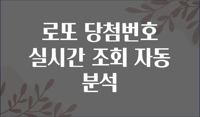 “이번 주 로또 당첨번호는 무엇일까?” 매주 수많은 사람들이 설레는 마음으로 로또 결과를 기다립니다. 📅 하지만 일일이 방송을 확인하거나 웹사이트를 수동으로 찾아보는 일이 번거로우셨죠? 오늘은 로또 당첨번호를 실시간으로 조회하는 방법과 이를 통해 당첨 확률을 높일 수 있는 자동 분석 노하우까지 친절히 알려드립니다! 🧙♂️✨
