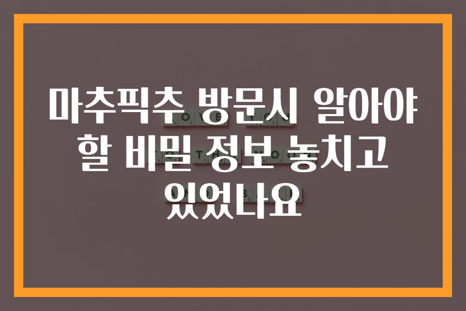 마추픽추는 페루의 안데스 산맥에 위치한 고대 잉카 도시로, 세계에서 가장 유명한 관광지 중 하나입니다. 하지만 많은 방문객들이 이곳의 진정한 아름다움과 역사적 의미를 놓치고 지나갑니다. 마추픽추는 단순히 눈앞에 펼쳐진 건축물들이 아니라, 잉카 문명의 수많은 비밀과 흥미로운 이야기를 담고 있는 장소입니다. 잉카제국의 잔재로 남아 있는 이 신비로운 도시를 방문할 준비를 한다면, 다음과 같은 비밀 정보를 잘 알고 가는 것이 좋습니다. 이 글에서는 마추픽추의 역사, 탐험 팁, 그리고 놓쳐서는 안 될 명소에 대하여 심도 깊은 정보를 제공하겠습니다.