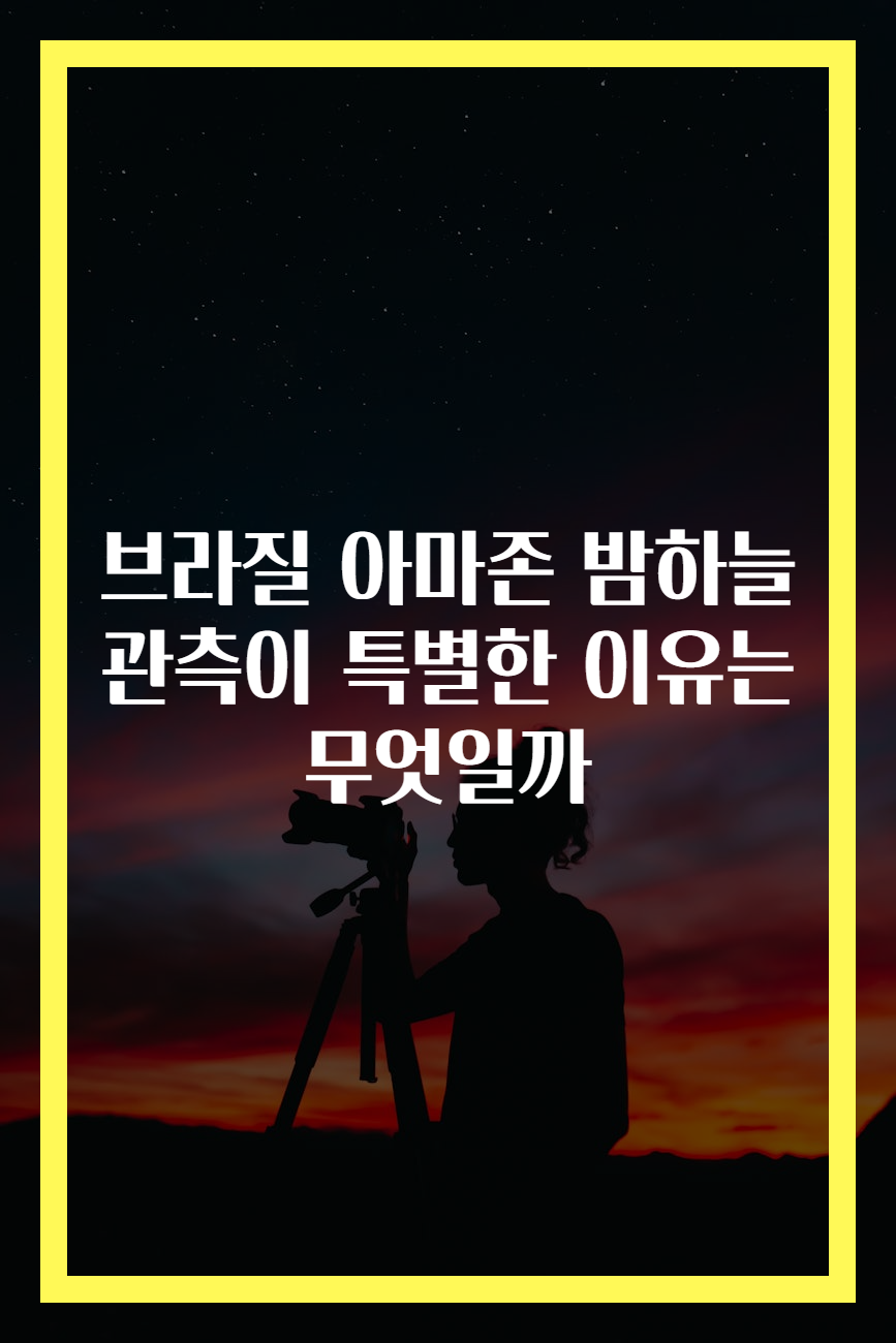Meta Description: 브라질 아마존의 밤하늘은 빛 공해가 없어 별관측에 최적의 조건을 제공합니다. 이곳에서 자연과 우주의 경이로움을 체험해보세요.