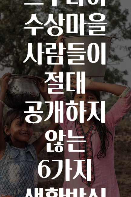 여러분, 혹시 수상마을 하면 어떤 이미지가 떠오르시나요? 💧🛶 맑은 물 위를 오가는 작은 배들, 그림 같은 자연 풍경, 그리고 조용하면서도 신비로운 분위기… 그런데, 이 아름다운 수상마을 사람들이 절대 공개하지 않는 생활 비밀들이 있다는 사실, 알고 계셨나요? 🤫✨ 오늘은 그 비밀스러운 6가지 생활 방식을 낱낱이 파헤쳐보겠습니다! 🔍💡