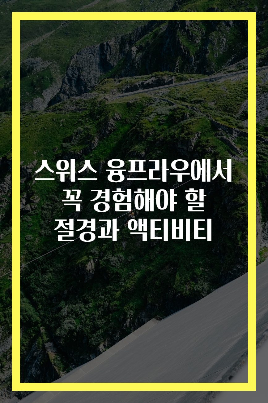 메타 설명: 스위스 융프라우에서 꼭 경험해야 할 절경과 액티비티에 대해 알아보세요. 자연의 아름다움과 다양한 액티비티를 제공합니다.