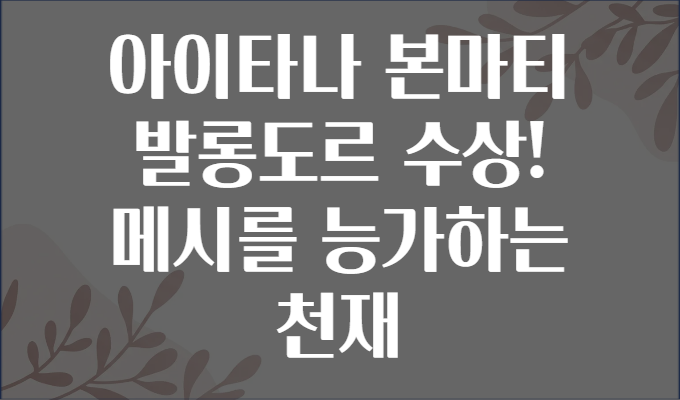 여러분! 축구 팬이라면 누구나 한 번쯤 가슴 뛰었던 순간, 바로 세계 최고 축구 선수에게 주어지는 ‘발롱도르(Ballon d’Or)’ 수상 소식을 접할 때입니다. 그런데 이번에는 아르헨티나의 전설 리오넬 메시(Lionel Messi)를 넘어선 새로운 슈퍼스타, 아이타나 본마티(Itana Bonmati)의 깜짝 발롱도르 수상 소식이 전해졌습니다! 🎉🔥