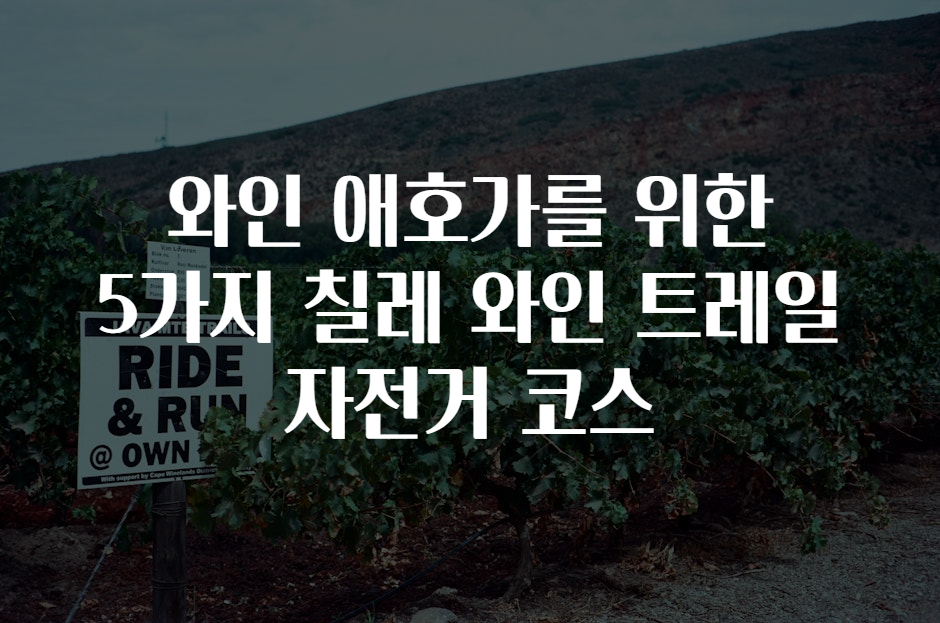 안녕하세요, 와인 애호가 여러분! 와인을 사랑하는 여러분에게 특별한 경험을 선사할 자전거 코스를 소개합니다. 칠레는 아름다운 자연경관과 뛰어난 와인으로 유명한 나라인데요. 그렇다면 이 멋진 풍경 속에서 자전거를 타며 와인을 즐길 수 있는 코스는 어떤 것들이 있을까요? 자, 지금부터 칠레의 5가지 와인 트레일 자전거 코스를 함께 탐험해 보아요! 🌍💚