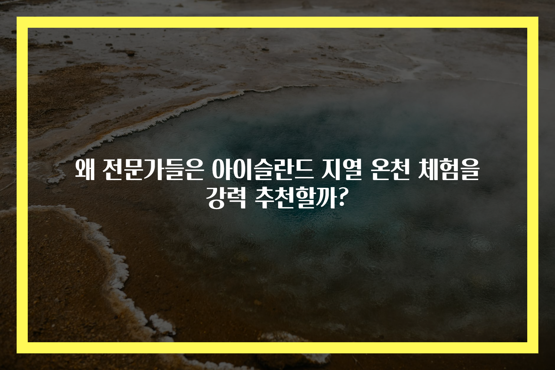 메타 설명: 아이슬란드 지열 온천이 왜 전문가들에게 추천되는지 알아보세요. 자연의 미네랄, 건강 혜택, 환상적인 경치가 함께하는 특별한 경험입니다.