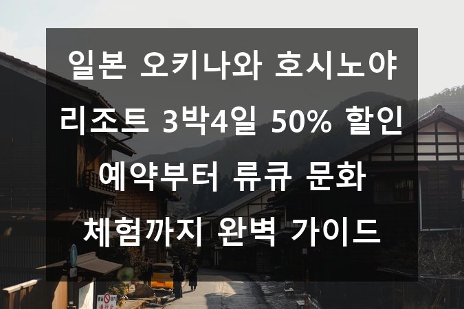 여러분, 일본 여행하면 도쿄? 교토? 아니면 오사카만 떠오르시나요? 🤔 이번에는 조금 특별한 곳, 바로 오키나와의 호시노야 리조트에서 즐기는 힐링 여행을 소개해드릴게요! 게다가 지금 3박 4일 예약 시 무려 50% 할인 찬스까지 있다고 하니, 놓치기 아까운 소식이랍니다! 🎉
