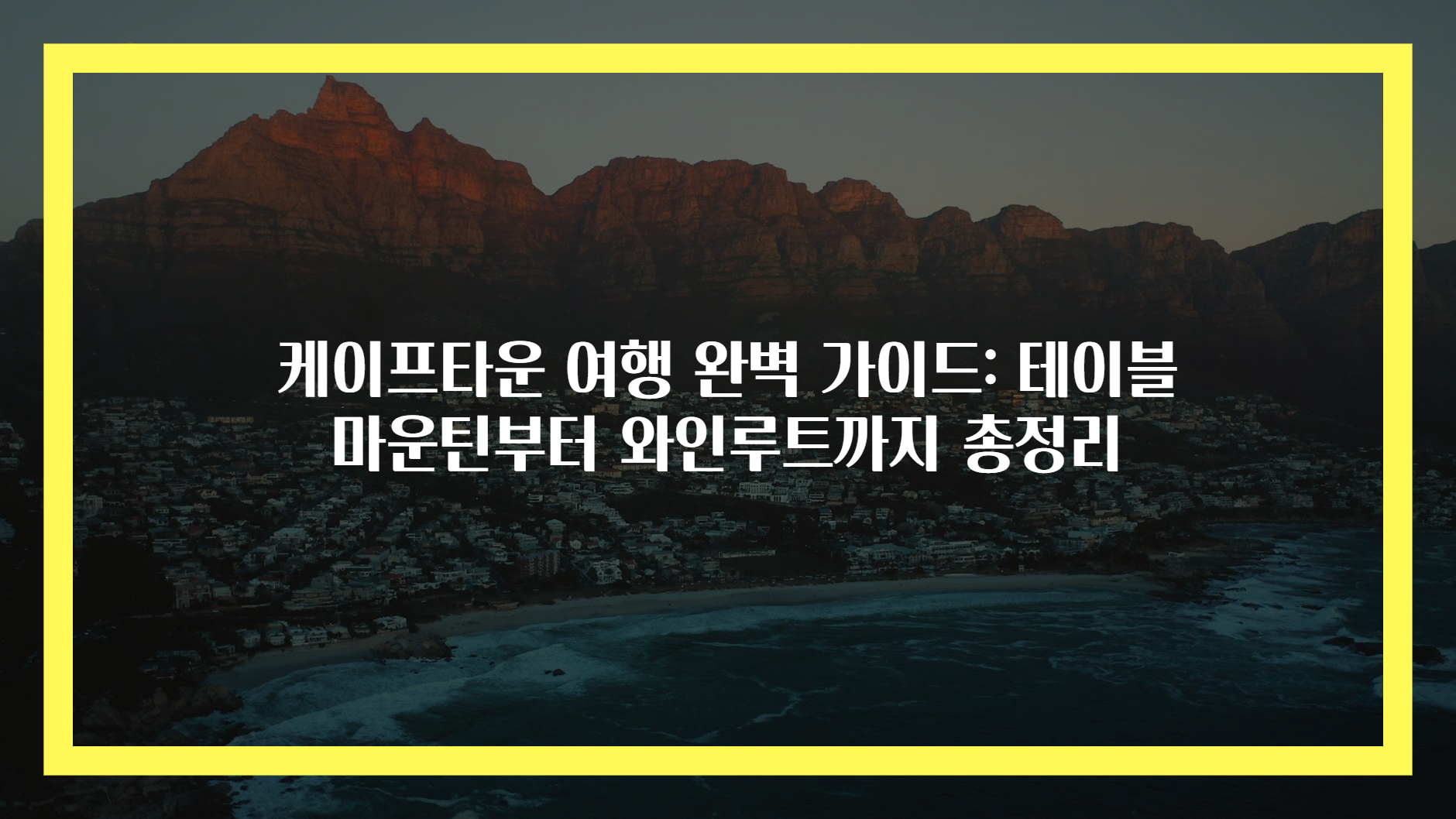 메타 설명: 케이프타운의 테이블 마운틴, 해변, 와인루트의 매력을 필수로 경험하세요. 여행 정보와 팁까지 완벽 가이드로 만나는 케이프타운.