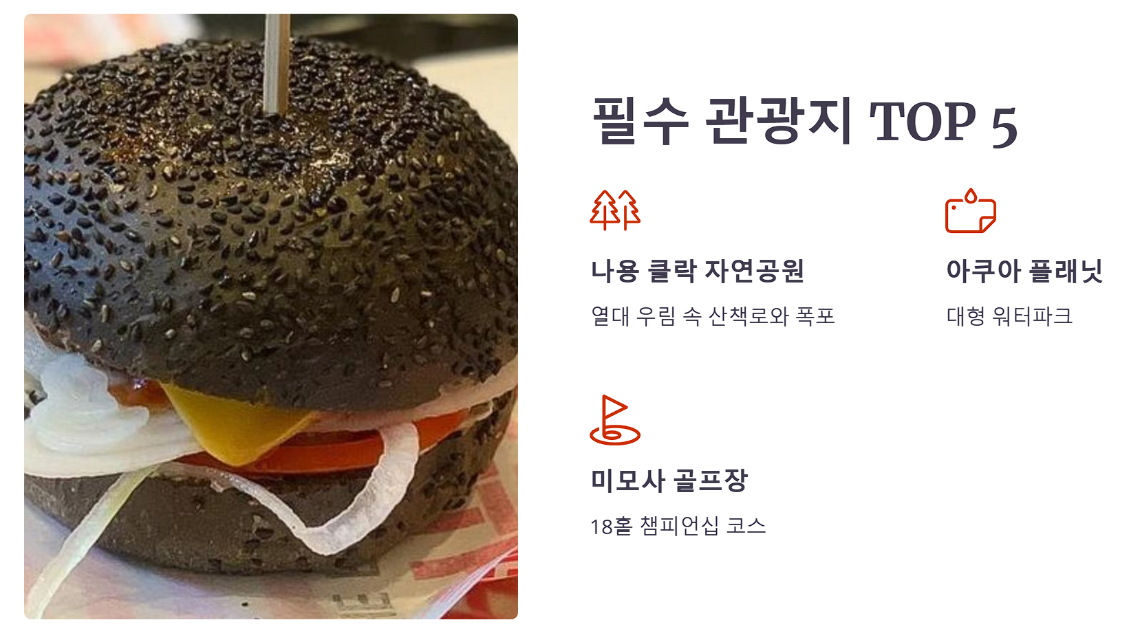- 여행 성향: 휴양, 골프, 맛집 탐방