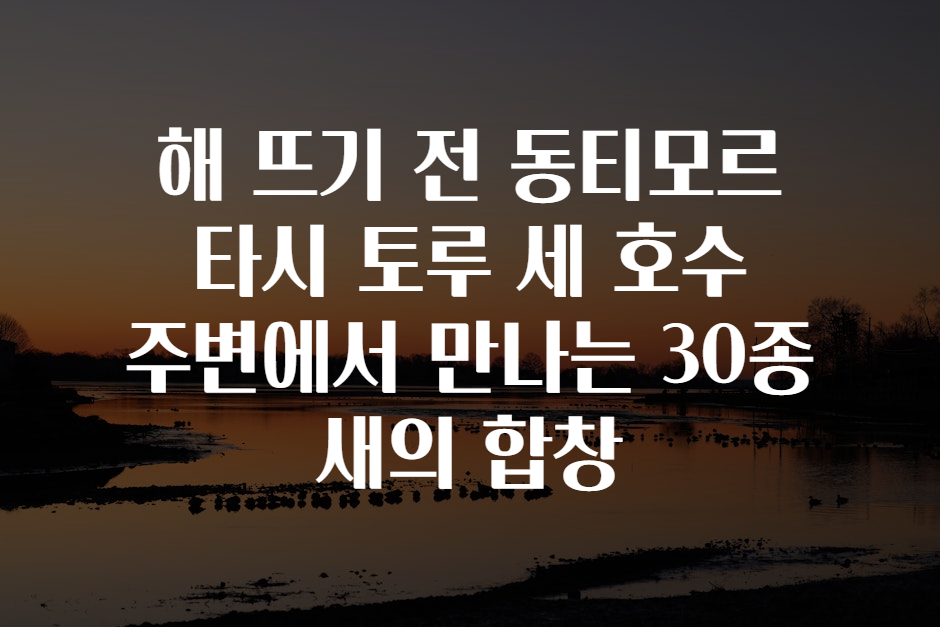 안녕하세요, 자연과 여행을 사랑하는 여러분! 오늘은 동티모르의 숨겨진 보물, 타시 토루 세 호수(Tasi Tolu Lakes)에서 아침 해가 뜨기 전에 펼쳐지는 환상적인 새들의 합창을 경험할 특별한 여행 이야기를 전해드리려고 합니다. 🧳✨