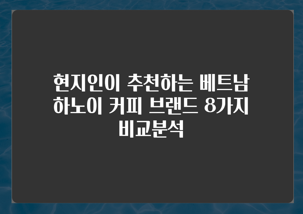 🌍 "커피가 없으면 삶이 없다"는 베트남 속담처럼, 베트남은 전 세계적으로 사랑받는 커피의 본고장입니다. 특히 하노이는 독특한 커피 문화를 자랑하며, 여행자들에게는 커피 한 잔을 통해 현지의 정취를 느끼기에 부족함이 없습니다. 오늘은 하노이에서 현지인들이 추천하는 커피 브랜드 8가지를 비교 분석해 보겠습니다.