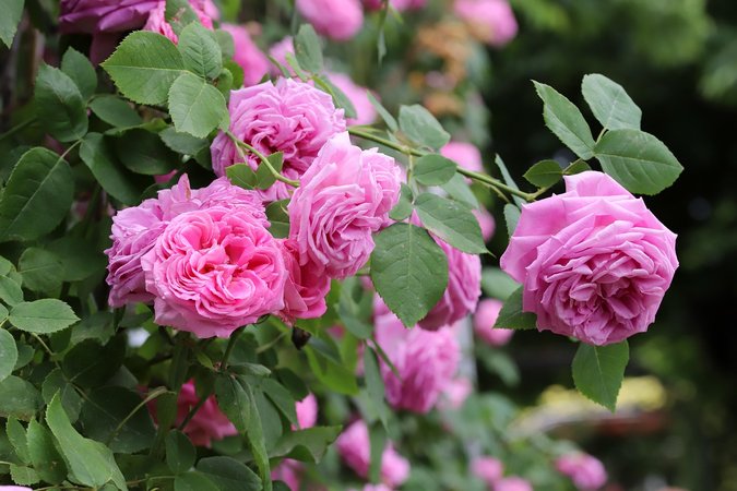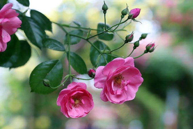 핫핑크부터 파스텔톤까지 다양한 색감의 장미 언덕 위에 자리 잡은 빈티지 스타일 벤치는 감성 사진에 최고!