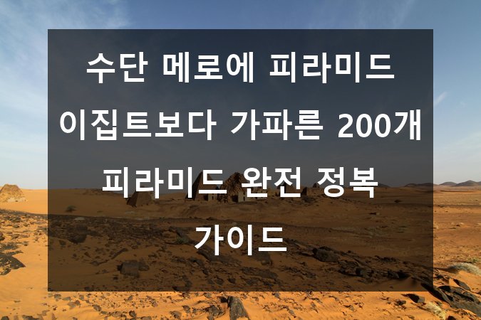 여러분, 혹시 이집트 피라미드는 다 보셨나요? 🏺 하지만 수단의 메로에는 알고 계신가요? 😲 이곳에는 무려 200개 이상의 피라미드가 솟아 있어 이집트의 그것보다 가파르고 독특한 모습을 자랑합니다. 오늘은 아직 덜 알려진 수단 메로에의 신비로운 고대 유적지를 낱낱이 파헤쳐볼 거예요! 📚