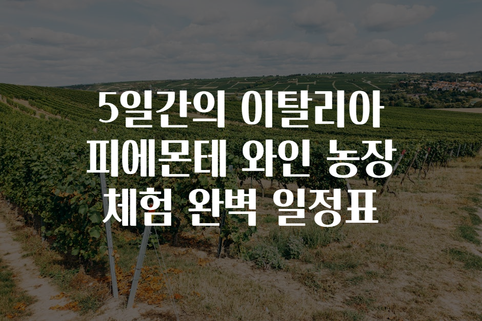이탈리아 북서부의 피에몬테 지역은 🏞️ 그림 같은 풍경과 세계적인 와인 생산지로 유명한 곳입니다. 5일 동안의 일정으로 와인 양조 과정부터 현지 음식, 지역 투어까지 알차게 경험해보세요! 지금 바로 여행 준비에 들어가 볼까요? 🚗💼